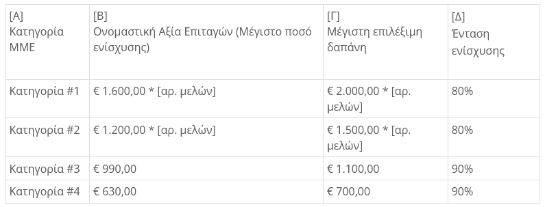 - Το ύψος της ενίσχυσης/ποσό εξαργύρωσης δεν μπορεί να υπερβεί: